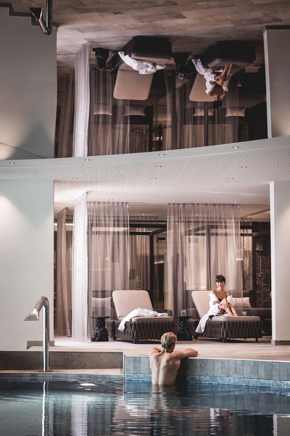 - 3 400 m² großes Alpin Spa mit 240 m² Wasserfläche, Saunalandschaft, Fitness- und Spa-Center