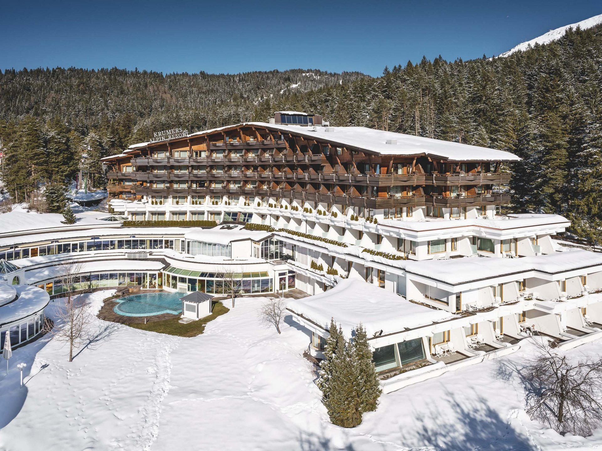 Ihr Hotel liegt in Seefeld, Tirols Hochplateau: Krumers Alpin – Your Mountain Oasis ****S. In einer der exklusivsten Alpendestinationen erwarten Sie zeitloser Alpencharme und die Eleganz eines familiengeführten, alpinen Resorts. Freuen Sie sich in unserem Hotel auf ein glamouröses Interieur, einen einzigartigen Wellnessbereich und die beste Lage auf dem weltberühmten Sonnenplateau.