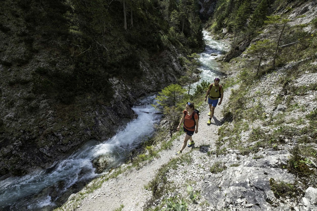 Ein wahres Abenteuer ist ein Abstecher in die Gleirschklamm – über den sogenannten Nederweg geht es in dieses atemberaubende Tal, entlang eines schmalen Stegs, unterhalb der tosende Bach. Zurück geht es dann über die Scharnitzer Alm zum Parkplatz bzw. zum Bahnhof in Scharnitz.
